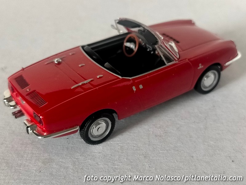 Neanche questa è una Fiat, ma una Bertone. Il carrozziere torinese vendeva infatti una propria versione con il suo marchio, denominata CL, Convertibile Lusso. L’antefatto storico e quello modellistico che mi hanno ispirato questa elaborazione sono stati raccontati su PLIT nel gennaio dell’ anno scorso, quindi non mi ripeto.