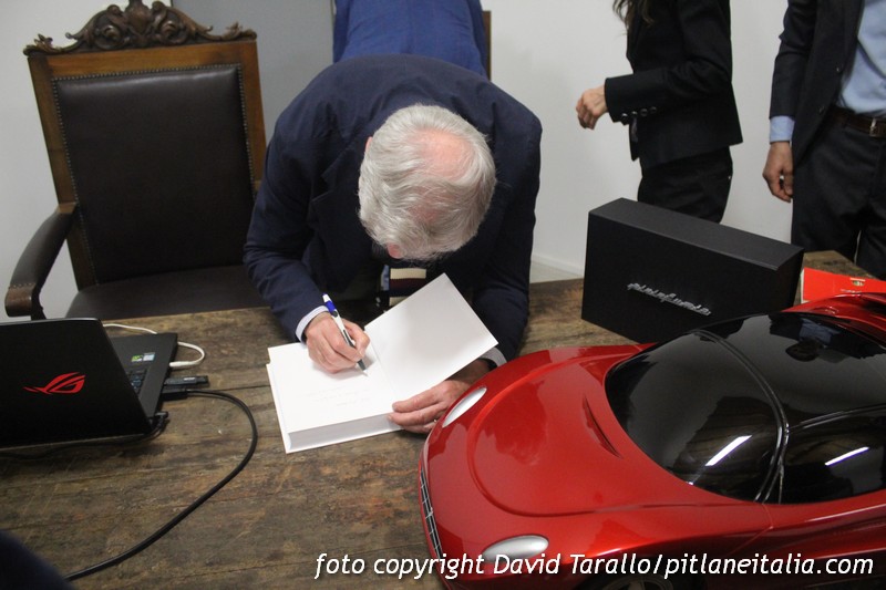 Al termine del suo intervento, l’ingegner Fumia ha ricevuto dal club organizzatore uno speciale riconoscimento (vedi foto sopra), prima di passare ad una sessione firma copie del libro AUTOritratto, uscito una decina di anni fa per i tipi di Fucina, una corposa memoria autobiografica che getta una luce inedita sul mondo della carrozzeria, del design e dell’industria automobilistica.