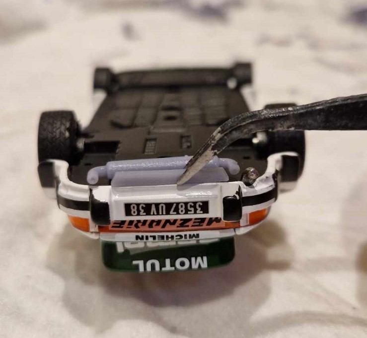 Elio Venegoni di Spirit of Racing ha fatto realizzare in 3D il terminale di scarico per la Porsche 911 SC di Ixo Models (1:43). Ne sono stati stampati per ora 20 esemplari da Roberto Marchesani; il costo è di € 5 cadauno. La confezione (catalogo SP430001) comprende la marmitta a due uscite e una parte della paratia del paraurti, assenti sull’Ixo e sul corrispondente modello da edicola.