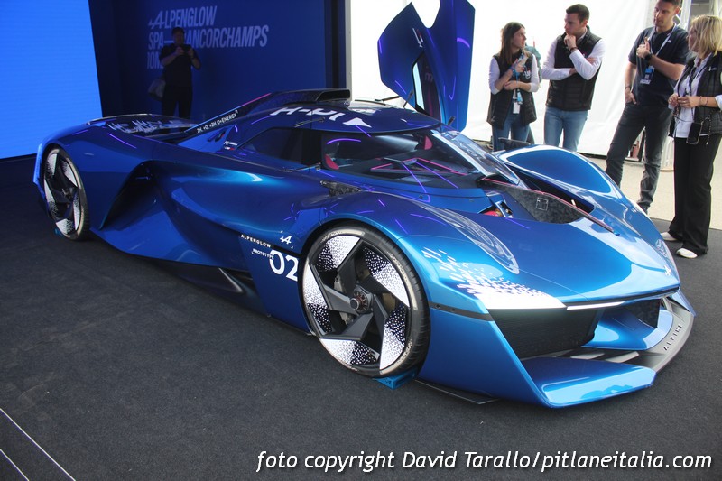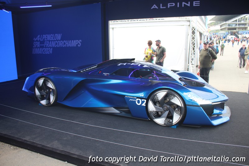 A Spa, in occasione della 6 Ore del FIA-WEC, è stata presentata la versione dinamica dell’Alpine Alpenglow, una concept car che era stata originariamente svelata al Salone di Parigi del 2022. Il design della vettura è stato aggiornato. Il propulsore è a combustione interna a idrogeno.