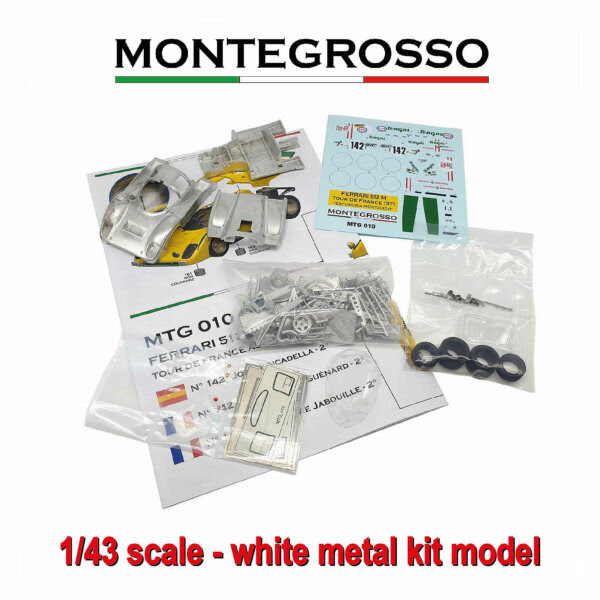 E’ disponibile il kit Montegrosso (catalogo MTG010) della Ferrari 512M Escuderia Montjuich che partecipò al Tour Auto 1971 con Juncadella / Guénard / Jabouille. Il kit, in metallo bianco scala 1:43, dispone di cofano apribile e riproduzione della meccanica.