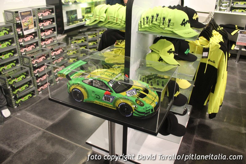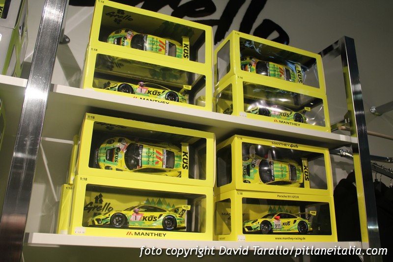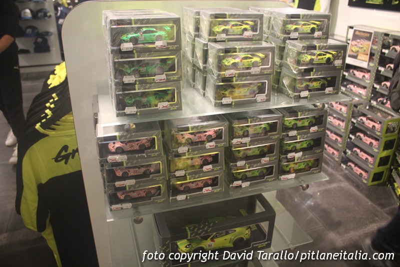 In presenza di certi fenomeni mediatici è necessario ammettere la bontà delle scelte di marketing e la riuscita di un determinato metodo di comunicazione. Nel caso della Porsche “Grello” del Manthey Racing, si è avuto uno sviluppo esponenziale della notorietà di quella che tutto sommato resta una vettura marginale, ossia nota soltanto a un certo settore delle competizioni, lontana – tanto per fare un esempio – dalle luci iper-mediatizzate della Formula 1. Tutto è nato quasi per caso ma è stato incanalato con tanta sapienza commerciale che oggi questo brand – perché ormai tale è diventato – rivaleggia con altre linee di prodotti legate a livree di vetture da corsa ben più antiche (un altro esempio, anche se diverso per molti aspetti, potrebbe essere la Porsche 917/20 Pink Pig di Le Mans 1971). Che dire? Se riescono a vendere migliaia di modelli industriali e di articoli di merchandising a collezionisti sempre più dipendenti e condizionati, significa che hanno ragione loro.