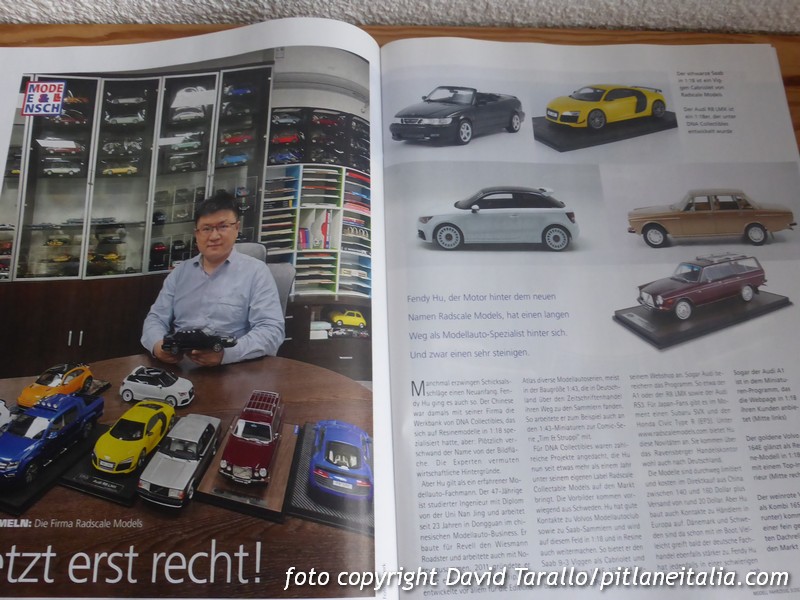Proprio in questo senso, Modell Fahrzeug propone qualcosa di più originale rispetto alla poca concorrenza rimasta in piedi. Nel numero di maggio-giugno 2024 troviamo un’intervista con Fendy Hu, fondatore e promotore del marchio Radscale Models, una struttura che in un recente passato era la fabbrica di DNA Collectibles, ormai chiusa; i progetti di DNA sono stati rilevati da Fendy Hu, che ha organizzato in questo caso una sorta di vendita diretta alla OttOmobile, pur riservando un canale privilegiato ai rivenditori occidentali interessati al marchio.