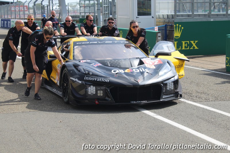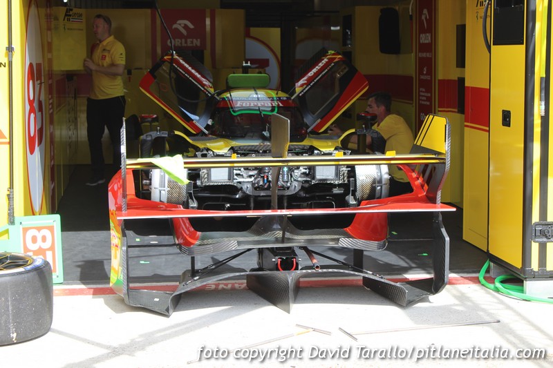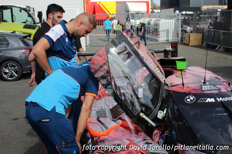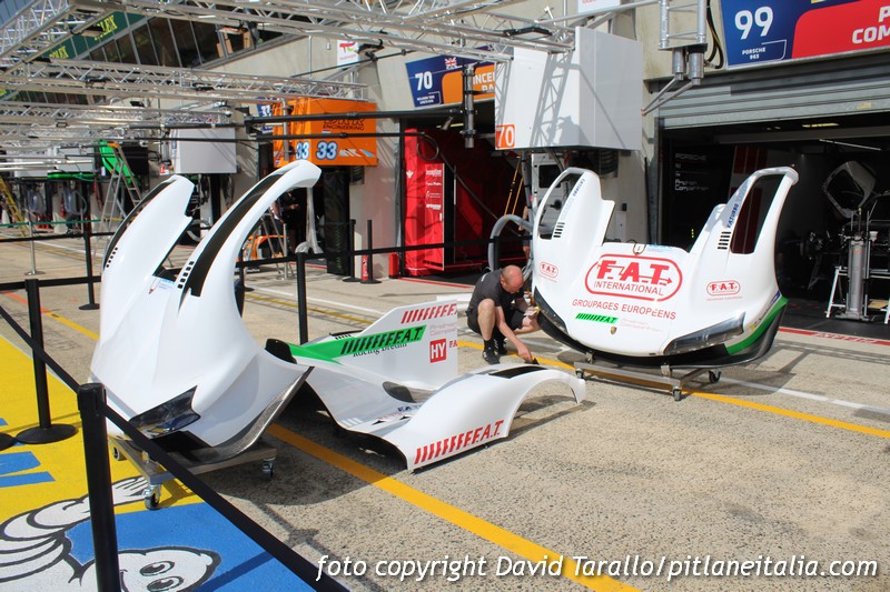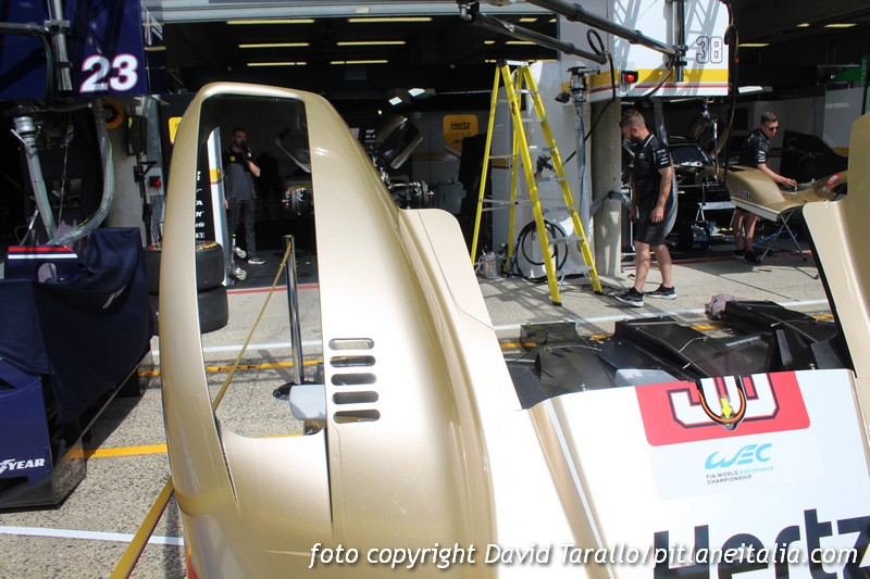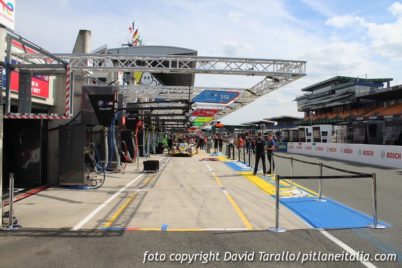 Dopo le verifiche e la sfilata in città di alcune auto, i team hanno iniziato a lavorare per concentrarsi esclusivamente sugli impegni agonistici, che prenderanno il via domani 9 giugno con la giornata test. Gli spostamenti a Le Mans nei giorni della 24 Ore non sono facilissimi ma da place de la République abbiamo raggiunto la sala stampa in circuito e poi la corsia dei box per fare qualche scatto ai preparativi. Oggi non c’è stata attività ed è proprio in questi frangenti che si riescono a fare foto con calma, magari riprendendo qualche scena insolita, come i tecnici della Marelli alla presa con l’elettronica della BMW “art car” nello spazio che generalmente viene impiegato come parco chiuso.