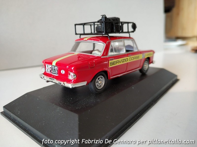 Fabrizio De Gennaro ha appena completato un’originale elaborazione su base Norev 1:43 riproducente la Lancia Flavia utilizzata per l’assistenza rally negli anni ’60-70. Il portapacchi è autocostruito in plasticard, mentre le decals sono state appositamente disegnate al computer e stampate.