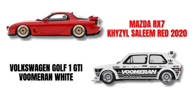 Le prime due referenze della serie Project Cars, prodotte in serie limitata a 3000 esemplari, saranno la Volkswagen Golf Mk.I GTI Voomeran bianca (OT1061) e la Mazda RX7 Khyzyl Saleem rossa (OT1062).