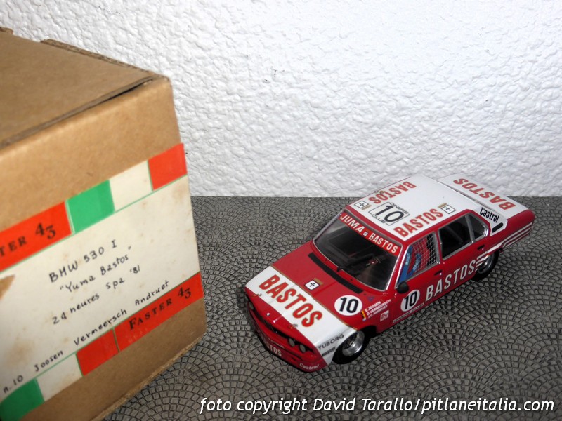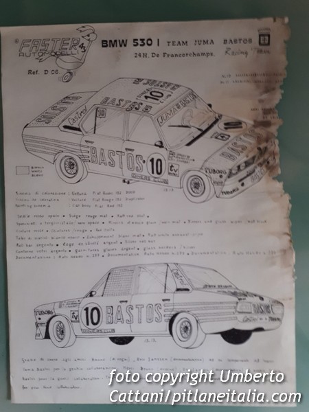 La BMW 530i di Solido – un modello ottimamente realizzato, commercializzato alla fine del 1979 – dette l’idea a Umberto Cattani di ricavare un transkit per riprodurre le vetture della 24 Ore di Spa, le due Bastos dello Joosen Racing e le due Gitanes della Waterloo Motors. I transkit contenevano dettagli in metallo bianco per gli interni (fra cui ovviamente un rollbar completo) e decals di Cartograf, stampate con la consueta maestria tecnica.