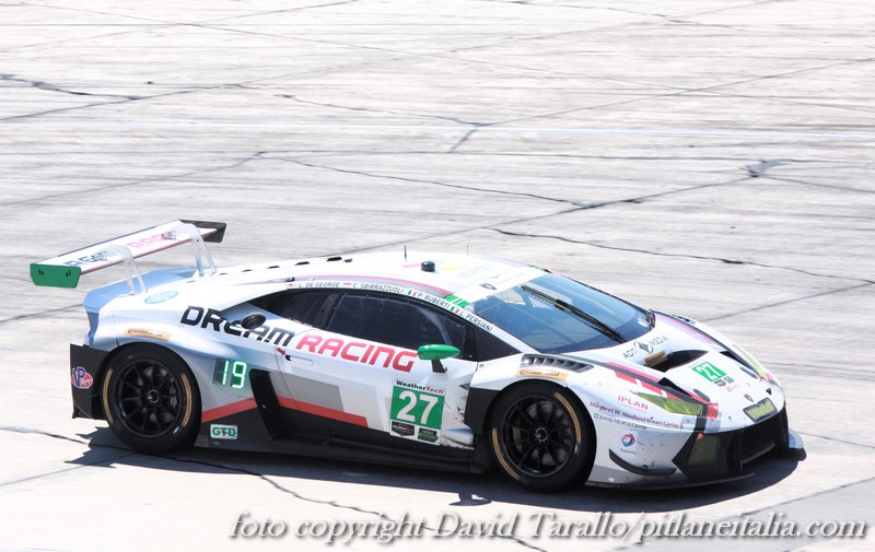 Foto di apertura: Luca Persiani con la Ferrari 458 Italia GT3 alla 1000km del Nürburgring 2013, valida per la serie Blancpain. Qui sopra, Persiani al volante della Lamborghini Huracán GT3 affronta l’ultima curva del circuito alla 12 Ore di Sebring nel 2017.