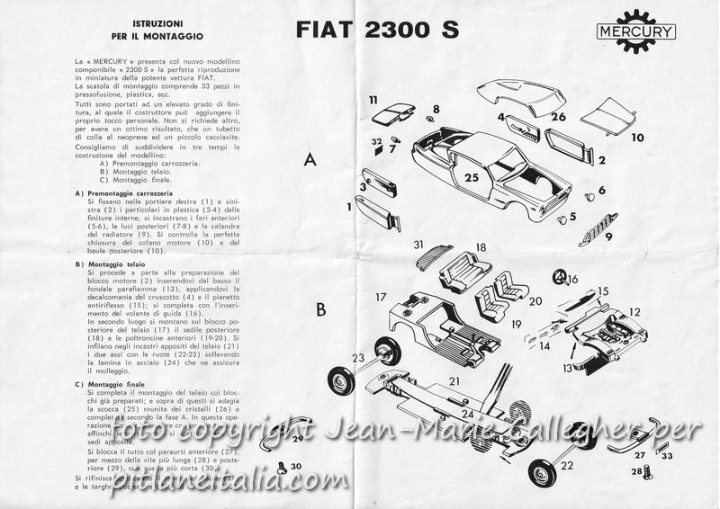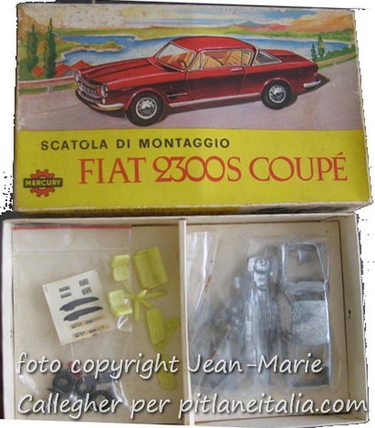 La Fiat 2300S Coupé (art.23) resta uno dei più bei modelli in 1:43 della Mercury, ma – citando la Settimana Enigmistica – non tutti sanno che ne venne commercializzata anche una versione in kit, che a quanto pare restò un caso isolato. Si trattò di una prova per tastare un possibile mercato di montatori? Esigenza di ammortizzare una quantità eccessiva di stampi? Difficile dirlo con esattezza. Fatto sta che nel 1963 la Mercury mise a catalogo questa scatola di montaggio.