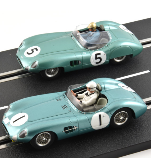 Le Mans Miniatures attende a breve la consegna di un nuovo modello slot 1:32, l’Aston Martin DBR1 vittoriosa alla 1000km del Nürburgring nel 1959, svoltasi giusto due settimane prima di un ulteriore, importantissimo successo per la casa britannica, quello alla 24 Ore di Le Mans. E’ interessante, osservando i due modelli, comprendere quante modifiche fossero state apportate fra una gara e l’altra (ultima foto della gallery qui sotto).