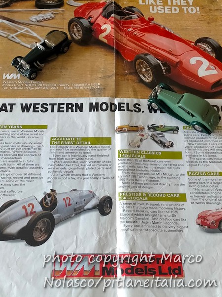 “Mi aggancio alla bella storia della Western che hai pubblicato su PLIT e, visto che ne hai parlato, ti mando qualche foto del loro primo modello, la Mercedes Benz 540K W29 Spezialroadster del 1937, nella prima versione del 1974, senza parti nichelate. Aggiungo un catalogo a manifestino della marca di metà anni ’80.