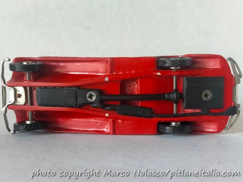 Neanche il Western scala le montagne, anche per quell’aria volutamente “british” che trasmette solidità, come scrivi tu, ma non si può definire raffinato come altre riproduzioni per esempio francesi dell’epoca. L’artigianalità del modello si rivela nella superficie non perfettamente rifinita, nella verniciatura non particolarmente brillante, nelle gomme, vere, che non sono fermate sui cerchi da incastri, dal parabrezza in acetato, da qualche asimmetria di troppo”.