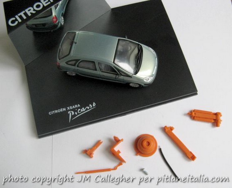 Ricordate la celebre pubblicità della Citroën Xsara Picasso di inizio anni 2000? Marpytoys, storico marchio olandese specializzato nella realizzazione ed elaborazione di modelli Citroën rari e particolari (https://marpytoys.com/en), ha commercializzato un transkit che permette di ricreare la scena dello spot della Picasso. La base Norev 1:43 va acquistata a parte.
