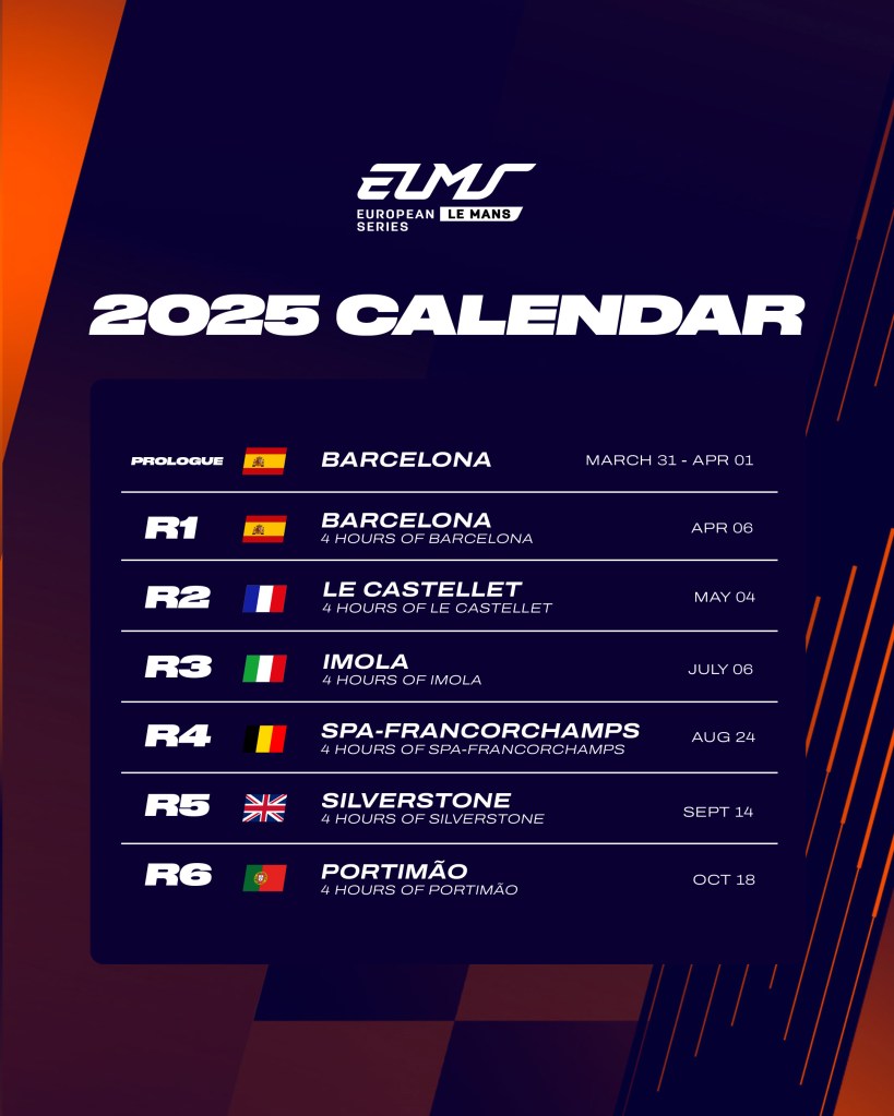 E’ stato oggi reso noto il calendario 2025 dell’European Le Mans Series. Si inizierà come d’abitudine a Barcellona, che ospiterà anche il prologo. La gara del Mugello non è stata confermata e al suo posto torna, dopo sei anni, Silverstone. Così, dal 2021, l’ELMS disputerà sei gare in sei paesi diversi. Per l’Italia, resta Imola, in calendario il 6 luglio.