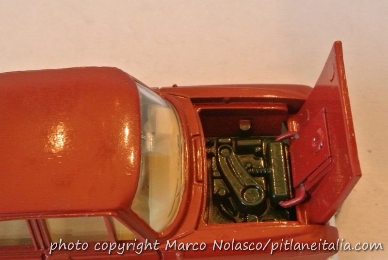 Aggiungo la foto dei cofani delle due station wagon in versione “Aeroflot” 426 (1360cc) a sinistra e 427 (1480cc) a destra. Quello a sinistra è molto simile al Dinky, che però era fuso con la scocca, mentre questo è riportato.