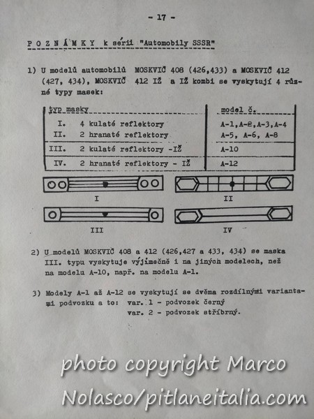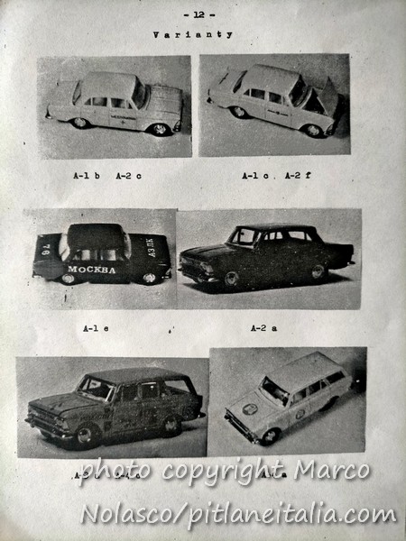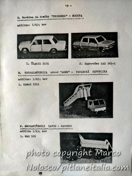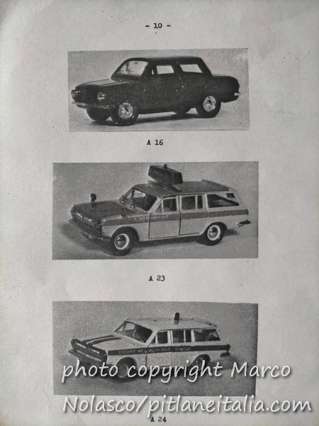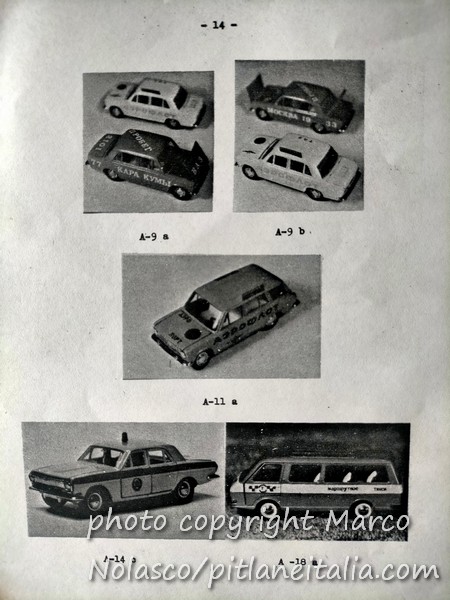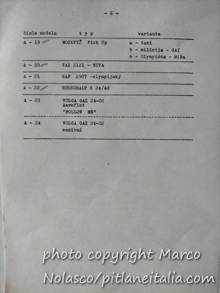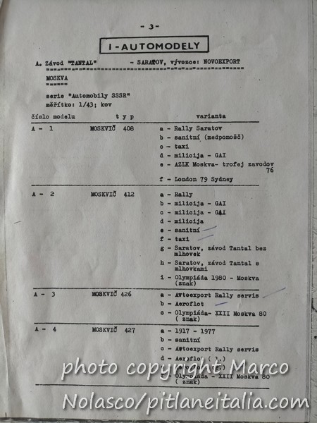 Chiudo questa serie di articoli sui modelli russi con un catalogo quasi completo che mi mandò il collezionista cecoslovacco che mi procurava questi modelli. Mancano delle pagine, ma non credo di averle perse. Credo che il cecoslovacco non me le avesse mandate. La prima pagina in realtà è un listino prezzi in lire. Evidentemente era per i collezionisti italiani.