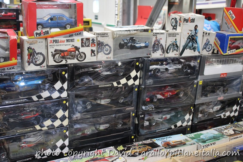 Quest’anno gli specialisti del modellismo sono stati tutti (o quasi) raggruppati in un unico padiglione, il numero 28. Fanno eccezioni alcuni marchi di produttori, come BBR o Laudoracing Models che probabilmente hanno preferito distinguersi, facendosi inserire in altri padiglioni a tema automobilistico. Gran parte dei venditori sono riuniti invece sotto uno stesso tetto, peraltro mal indicato perché il padiglione 28 è una struttura che si trova in fondo alla fila degli spazi della Fiera di Bologna, abbastanza nascosta e priva di indicazioni. Vista l’importanza del settore, sarebbe stato bene essere più chiari sulla presenza di questa sezione. In generale, malgrado il tentativo di rendere la visita di Auto e Moto d’Epoca più facile, l’organizzazione ha studiato diversi percorsi tematici, ma non sempre le cose risultano di immediata comprensione, e questo in un’area molto grande, con centinaia di espositori.