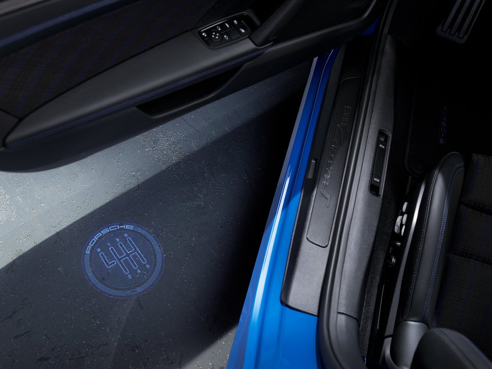 L’esclusività della 911 Carrera T è esaltata ulteriormente dai pacchetti di design Carrera T per gli esterni e gli interni. Questi ultimi sono disponibili nel classico colore Porsche Blu Genziana per offrire un contrasto cromatico di grande effetto. All’esterno della vettura, sono in questo colore gli inserti sul cofano posteriore, le decalcomanie Carrera T sui cofani anteriori e posteriori e sulle portiere, gli adesivi MT e i cerchi in lega leggera con finitura esterna lucida. I gusci superiori degli specchietti retrovisori esterni sono invece neri. Le cuciture a contrasto in Blu Genziana, al posto di quelle nere di serie, impreziosiscono gli interni e anche sui sedili sono presenti strisce a contrasto in Blu Genziana. La stessa tonalità caratterizza anche le cinture di sicurezza, i profili della console centrale e i pannelli delle portiere, oltre che gli inserti a contrasto e i loghi 911 cuciti sui poggiatesta.