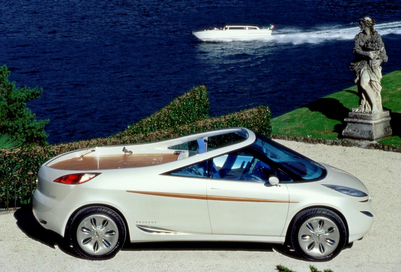 Ed eccoci al 1997: come suggerisce il nome, la PEUGEOT 806 Runabout è realizzata sull’apprezzata monovolume di fascia alta PEUGEOT 806; il nome è un omaggio ai piccoli e maneggevoli motoscafi da diporto “Runabout”, nati ad inizio 900 ed esplosi commercialmente tra gli anni 60 e 70, con una zona di guida scoperta e un “deck” posteriore, rivestito con una copertura in legno, da destinare ai passeggeri, a zona solarium o al trasporto di una esclusiva moto d’acqua coordinata, che può essere issata a bordo tramite un apposito verricello.