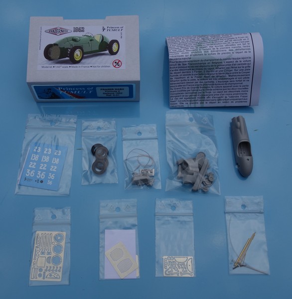 Frazer Nash Grand Prix stagione 1952, anno in cui il mondiale si svolse con la regolamentazione tecnica della Formula 2. La Frazer Nash fu la prima monoposto britannica a conquistare dei punti nel campionato del mondo. Il kit permette la realizzazione di quattro versioni per altrettanti GP. Questi kit hanno un prezzo di € 80 cadauno.