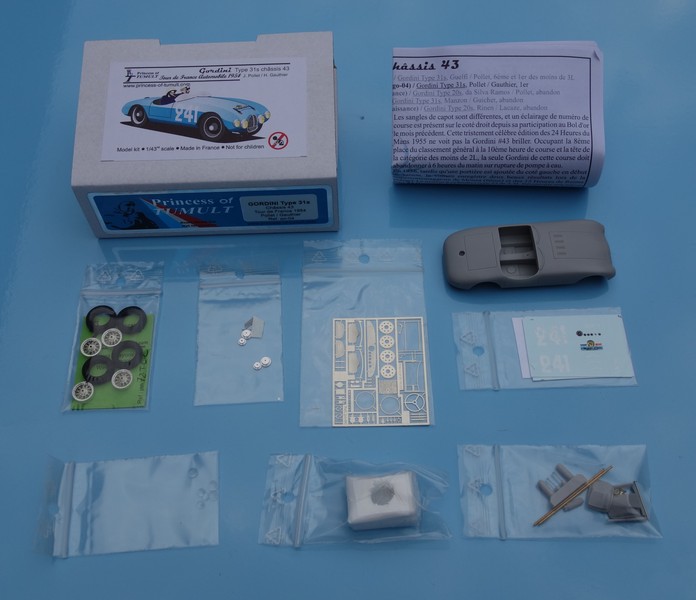 Jérôme Douzet, creatore del marchio Princess of Tumult, ha presentato le ultime novità. Si tratta come al solito di kit speciali in resina, scala 1:43, molto dettagliati: Gordini Tipo 31S nella versione vittoriosa al Tour Auto 1954 con Jacques Pollet e Hubert Gauthier.