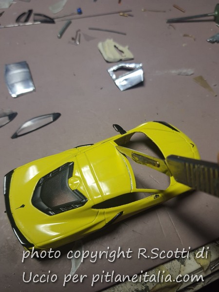 Di solito cerco di realizzare il tutto senza rovinare la vernice, anche se in questo caso mi sono tutelato preparando un tetto in lamierino: è sempre meglio avere un piano B per eventuali “incidenti”!