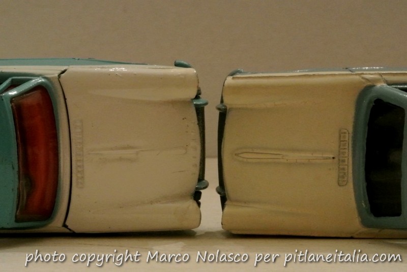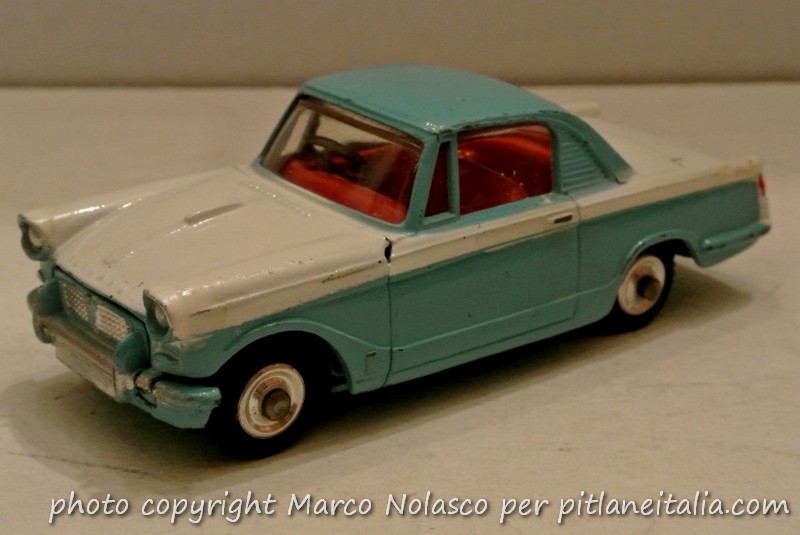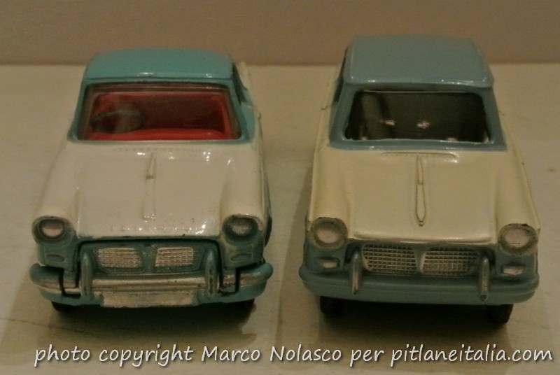 Come esempio più significativo cita le due Triumph Herald di Corgi, la coupé, e della concorrente Dinky Toys, la berlina, e con questa foto cerca di dimostrare la sua tesi.