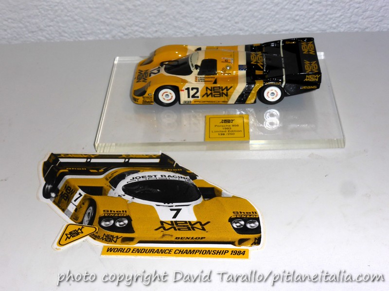 Il modello di Le Mans 1983 con un adesivo promozionale stampato dal Team Joest che annunciava l’impegno per la stagione 1984
