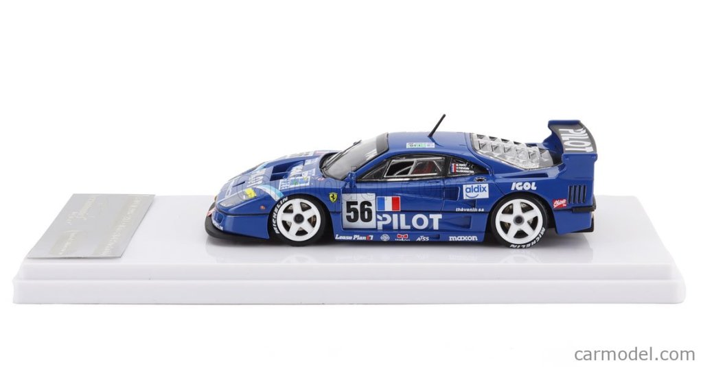 Come se non bastasse (ma basta e avanza), giusto controllando per sommi capi, sulla vettura numero 59 si nota l’assenza della lucina di riconoscimento rossa sul tetto1. Anche il colore blu della numero 44 sembra errato, troppo scuro rispetto all’azzurro della vettura reale. Ma questi sono dettagli su cui si può discutere. Quanto alla F40 LM “Pilot” numero 56, siamo sicuri della forma dello splitter?