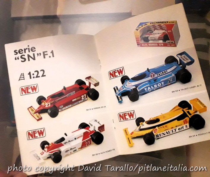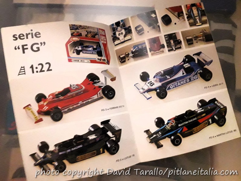 La serie FG appariva ancora, pur senza ulteriori novità, sul catalogo Polistil del 1982 ma ben presto uscì di produzione. Su questi modelli il tempo si è depositato lasciando però una traccia carica di bellezza e di nostalgia. Oggi sembrano quelle Formula 1 che rivediamo di tanto in tanto ad alcune manifestazioni, magari gli esemplari con i quali nessuno ha voluto correre di nuovo, lasciandoli nelle condizioni in cui si trovavano più di quarant’anni fa. Anche le scatole meritano un commento: tipiche nel brillante rosso Polistil, evocano Gran Premi del passato con le loro foto che raffigurano due partenze del ’79.