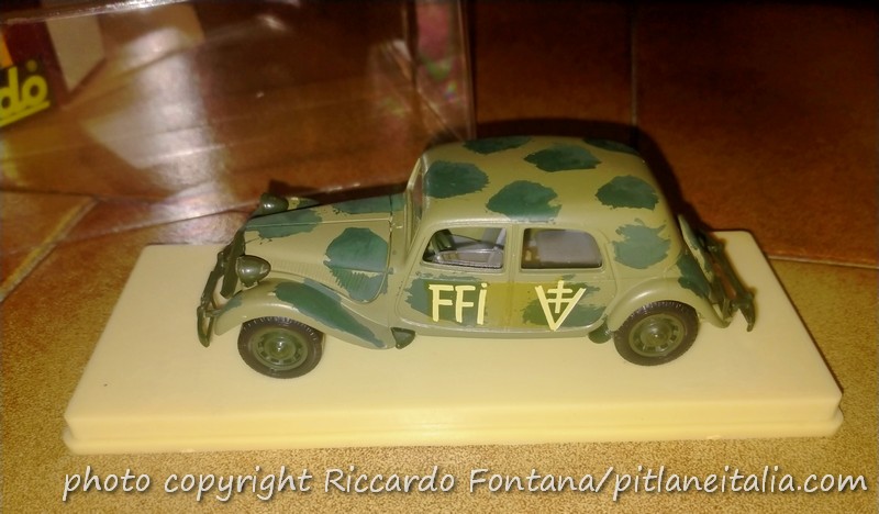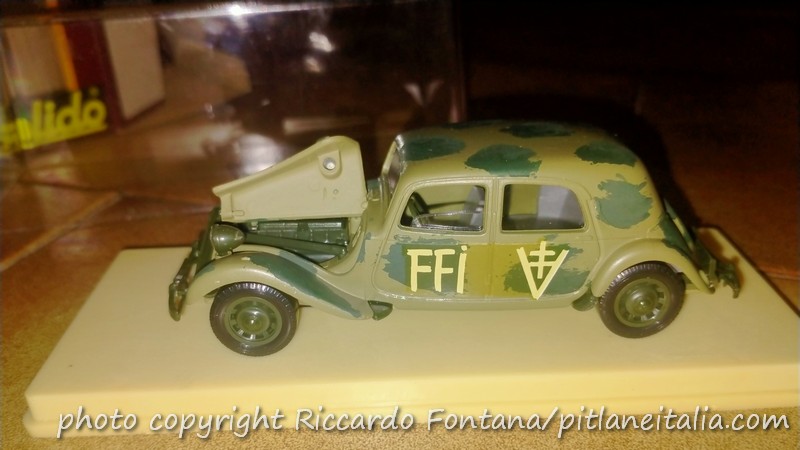 Praticamente subito apparve una versione – numerata 32B – denominata “FFI”, contraddistinta dalla livrea mimetica e dalle croci di Lorena sulle fiancate: un modello molto evocativo, che riportava (e riporta) alla bella atmosfera della Parigi liberata, del Maquis e del Generale De Gaulle, ma che ben poco veritiera poteva essere: è pur vero che la Traction Avant è stata forse il massimo simbolo della motorizzazione nella Resistenza (vedasi anche in film come La Grande Fuga, che di per sé fotografa un cliché già ben radicato nella scena in cui gli uomini del Maquis arrivano e crivellano a colpi di mitragliatrice i nazisti al bar dal finestrino di una Traction nera), ma sicuramente ben poche Traction impiegate dal Maquis o dalle truppe della Francia Libera del Generale De Gaulle potevano essere delle 15 CV, limitandosi a delle ben più “popolari” 11 CV, quando non addirittura a delle vecchie 7CV.