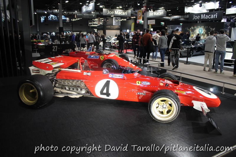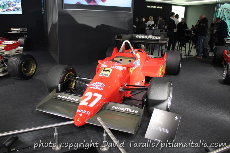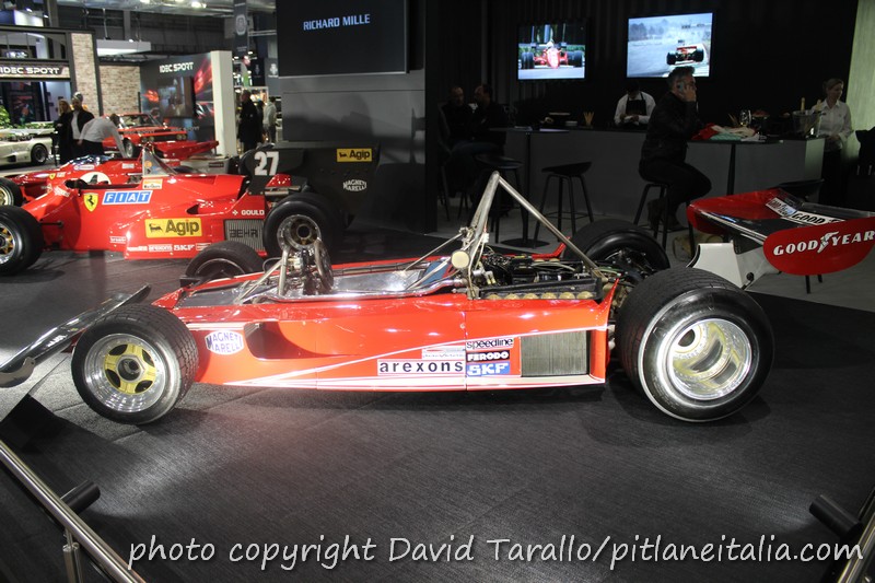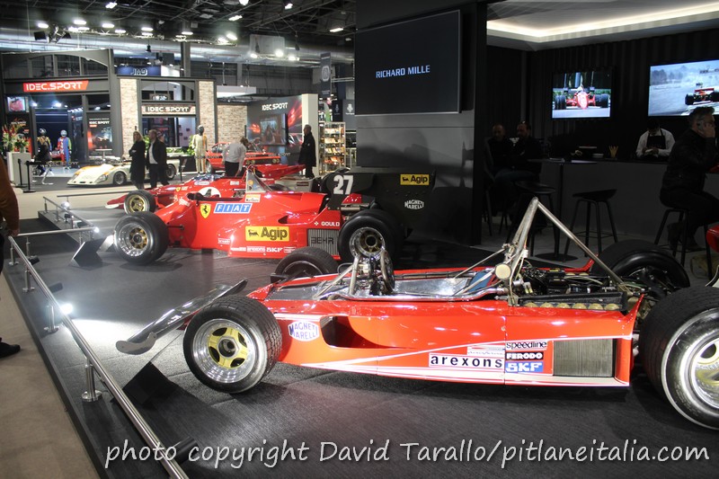 Attraverso una selezione di monoposto, il produttore di orologi, partner della Casa di Maranello, si concentra quest’anno a Rétromobile sull’impegno della Ferrari in Formula 1 dal 1970. Sono esposte alcune delle più significative vetture: 312 B (1970, telaio 003), 312 T (1975, telaio 024), 126 C4 (1984, telaio 074), 642 (1991, telaio 130), F187/88C (1988, telaio 102), F399 (1999, telaio 196), F2002 (2002, telaio 221), F2007 (2007, telaio 259).