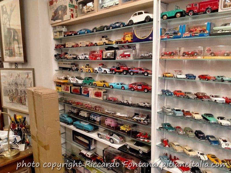 Arredamenti, già, perché il negozio nasce e vive, originariamente, come negozio di arredamenti d’epoca, ubicato in un civico vicino a quello dove si trova attualmente, per quanto una certa presenza modellistica – seppur ridotta rispetto ad oggi – c’è sempre stata: chi scrive anni fa si ricorda di aver visto delle F1 Mebetoys in scala 1:28 esposte accanto a mobili e luminarie, in numero certamente esiguo rispetto a quanto si può vedere ora, ma comunque presenti.