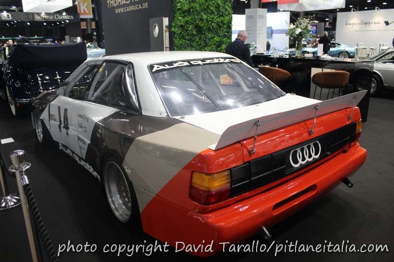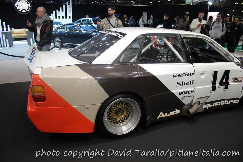 Come di consueto, Rétromobile è anche terreno ideale per i venditori tedeschi, che portano sempre cose notevoli. Quest’anno, accanto ad altre auto poco usuali come una BMW M1 Gruppo 5, troviamo anche un’Audi 200 quattro utilizzata dal team ufficiale nella Trans-Am del 1988, prima del passaggio nell’IMSA con la 90 quattro di classe GTO.