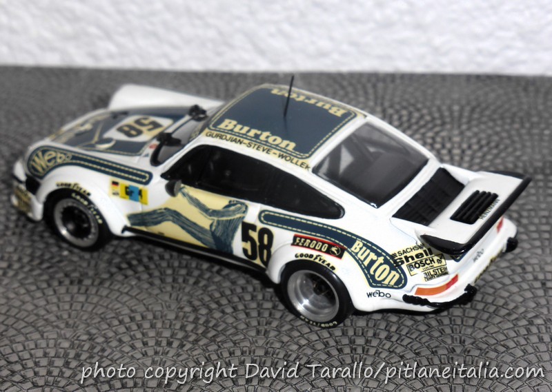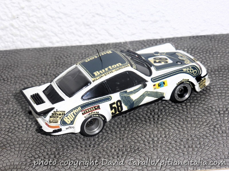 Quasi contemporaneamente, Hamore commercializzò un kit del tutto nuovo, la Porsche 934 Gruppo 4, in tre versioni: Schiller Racing2 e Burton-Kremer di Le Mans 1976 e JMS-Cachia di Le Mans 1977. Ricordo perfettamente la scatolina in cartone un po’ più piccola rispetto a quella dei kit X-AMR e l’etichetta in carta gialla.