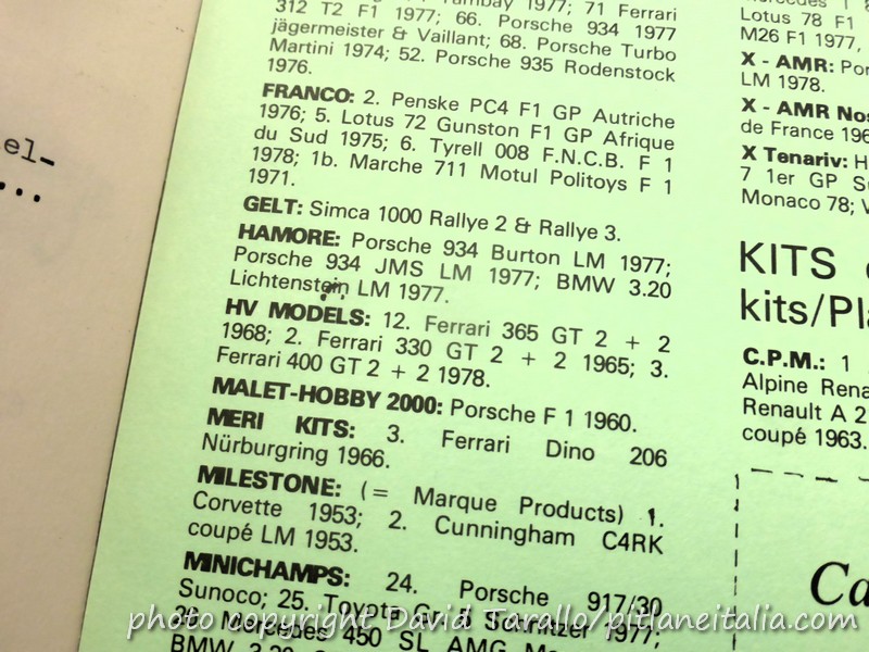 Avrei potuto fare decine di titolini stucchevoli ma stavolta ve li risparmio. Resta il parziale mistero di un marchio francese tanto strano quanto effimero, durato lo spazio di un anno o due: Hamore. Gli appassionati lo conoscono abbastanza bene, e non ho qui la possibilità di offrire materiale inedito su una produzione di kit che si limitò a due soggetti, la BMW 320 Gruppo 5 e la Porsche 934 Gruppo 41. Il nome Hamore deriva dalla crasi di Pierre Hannequin Modèles Réduits (ringrazio Umberto Cattani per aver fatto riaffiorare nella memoria questi lontani ricordi; in archivio ho anche un paio di sue lettere datate 1980, se non sbaglio). Se le mie informazioni sono corrette, fu André-Marie Ruf a rilevare le macchine di fonderia di Hannequin, nel periodo in cui il suo referente alla ditta Philippe Katz di Brie-Comte-Robert era stato indisponibile per una grave malattia.