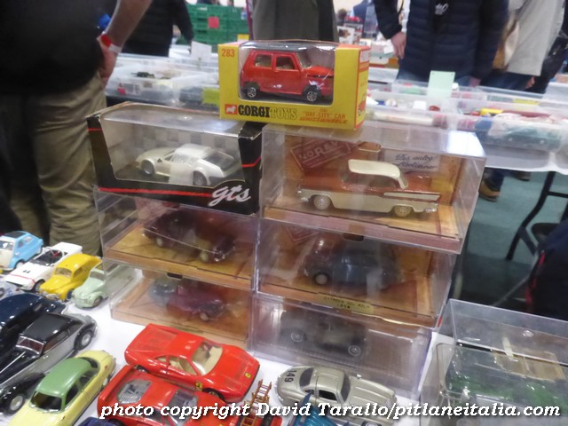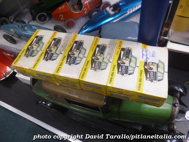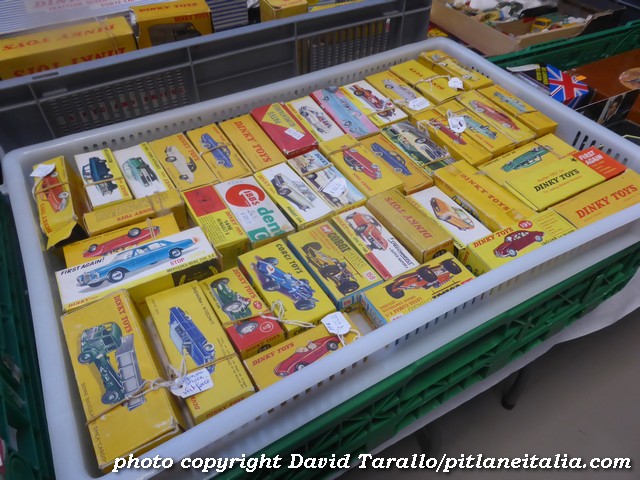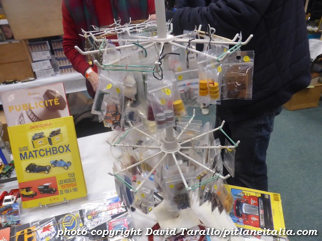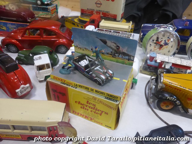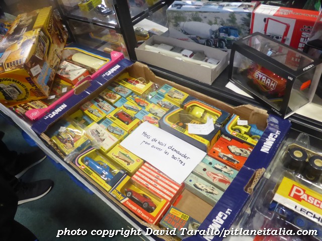 La zona dei parcheggi tutt’intorno all’area sportiva che accoglie la borsa si presentava strapiena fin dall’ora di apertura. Del resto si sa che i collezionisti seri arrivano presto. Tradizionalmente, la zona di Lione è ricca di Norev e Dinky “continentali”, e così è stato anche stavolta, con alcuni banchi ricchi di pezzi di eccezionale interesse, fra cui una confezione di sei Simca 1100 Police Dinky Spain ancora sigillate nel loro cellophane. Chissà se ci sarà mai chi avrà il coraggio di aprirle. Speriamo di no. Presenza significativa anche per il negozio Miniatures Lyon, che presentava alcune delle novità della propria produzione diecast (fra cui il coffret Bugatti di cui avevamo parlato su PLIT ormai diverso tempo fa, con i modelli nelle loro livree giuste, complete di tutti i numeri di gara) e anche un’ottima scelta di Mercury, Dinky e altri obsoleti.