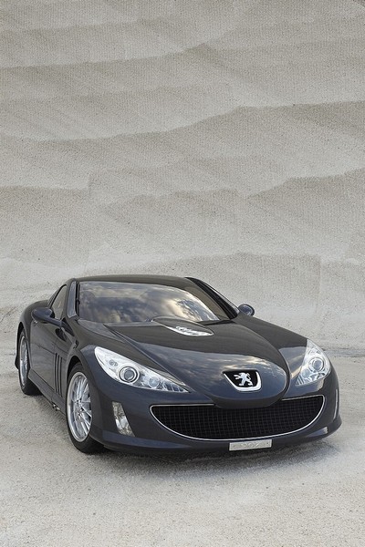 La linea, grintosa e sensuale, all’epoca venne descritta dagli stessi progettisti come la realizzazione di un sogno; venne definita “l’unione tra il passato e il futuro del marchio”, in pratica una sorta di reinterpretazione moderna e sintetica di quanto Peugeot aveva fatto nel corso della storia. La carrozzeria, lunga 4,37 metri, era per gran parte realizzata in fibra di carbonio, unendo così leggerezza e rigidità. La parte centrale del cofano motore era trasparente, come su alcune vetture da competizione degli anni ’50 e ’60, e permetteva di ammirare il poderoso V12.