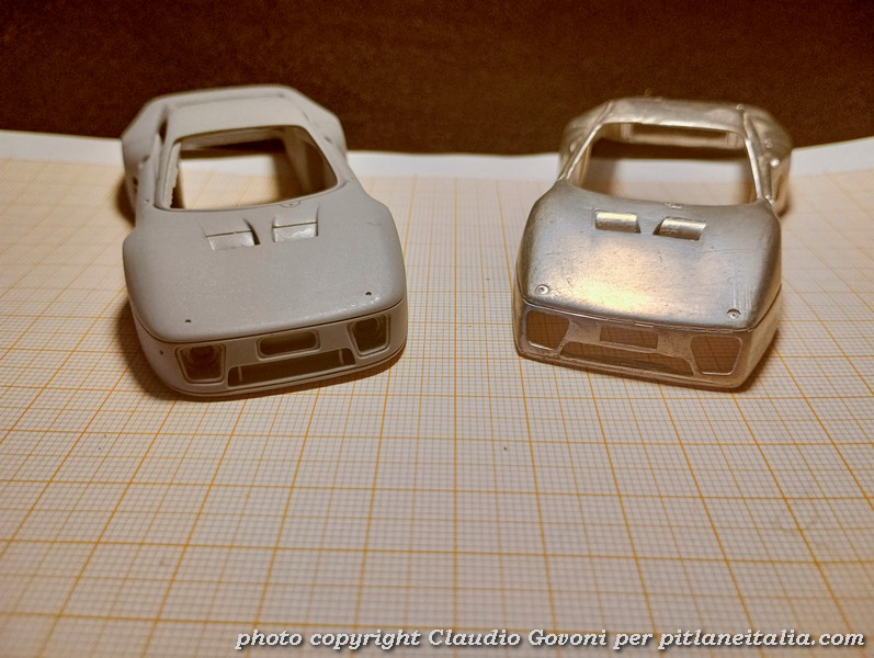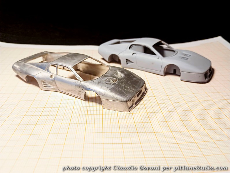La scocca, prototipata e prodotta nella caratteristica e pesante resina grigia da BBR, è maggiormente in scala, pur conservando la sensualità delle forme che caratterizzano questa versione della berlinetta bialbero.