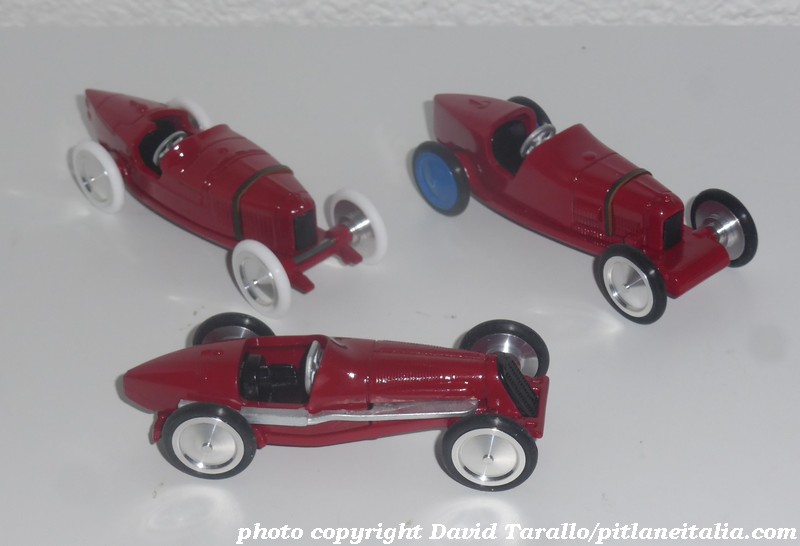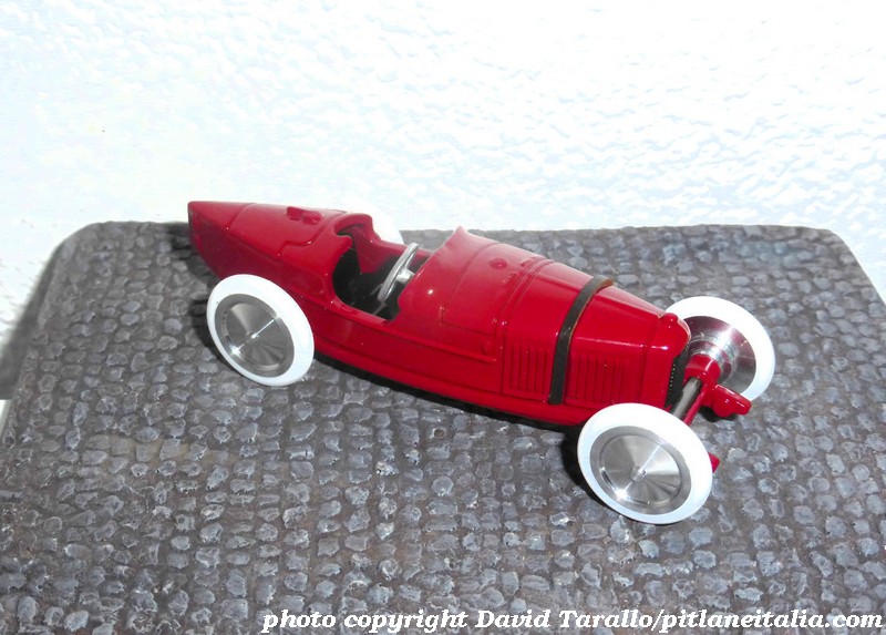 Stavolta siamo nel campo del made in Italy, e per di più nel sano e indistruttibile metallo bianco. Cosa si vuole di più? La cultura di, Alessandro Sannia, ideatore di Officina942, ha portato a ripescare nel passato nientemeno che le Fiat da competizione degli anni ’20 del secolo scorso, una cosa che solo gente come Carlo Brianza ormai quasi mezzo secolo fa aveva avuto il coraggio di fare. E questo tipo di vetture si adatta perfettamente alla tipologia di modello, che volutamente ricalca quelle caratteristiche che contraddistinguono gli Officina942 delle serie piccole. Anzi, con l’aumentare delle dimensioni si è potuta concedere qualche ulteriore citazione del passato, come le ruote (girevoli! Siete contenti?) in alluminio tornito con le gommine a “O-ring”. Il risultato è assolutamente gradevole: un modello equilibrato, essenziale, pulito, che evoca in modo quasi artistico la vettura reale, il tutto a un costo contenuto (€ 38, direttamente sul sito di Officina9421). Non sono certo modelli destinati ad essere compresi e valorizzati da tutti, né del resto il loro compito precipuo è quello di piacere alla massa. La tiratura, peraltro, è limitata di solito a 50 esemplari per referenza, non tantissimi e abbastanza da accontentare chi doveva essere accontentato.