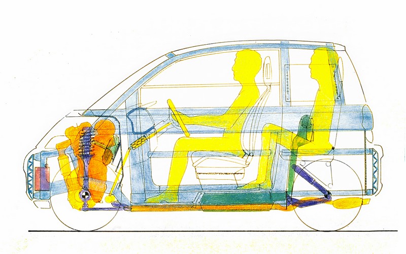 Oltre alla flessibilità, gli sviluppatori avevano anche tenuto d’occhio la sicurezza. Oltre alla robusta struttura in alluminio, la MAXX del 1995 era già dotata di airbag per il conducente e di un sistema antibloccaggio delle ruote (ABS). Le sospensioni anteriori McPherson basate sul Dynamic Safety Principle (DSA) erano state utilizzate anche su Opel Vectra e Omega. Gli ingegneri Opel posizionarono il serbatoio del carburante tra le ruote posteriori per una sicurezza ottimale, mentre la struttura in alluminio racchiudeva in modo protettivo la parte posteriore e creava una struttura deformabile nella parte anteriore. E grazie all’uso di metallo leggero, Opel MAXX pesava solo circa 650 chilogrammi.