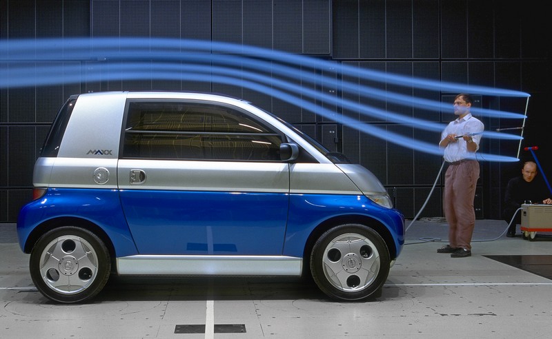Pochi mesi dopo la prima di Ginevra, la MAXX era in scena all’IAA di Francoforte come prototipo pronto per la guida, montato su cerchi in magnesio superleggeri, con pannelli delle portiere e parafanghi in carbonio e con un economico motore a tre cilindri high-tech. Il motore da un litro all’avanguardia per l’epoca – il primo motore a tre cilindri sviluppato da una casa automobilistica europea per la produzione in serie – superava anche alcuni motori a quattro cilindri dell’epoca in termini di erogazione di potenza. Ma la cosa più impressionante era il basso consumo di carburante: secondo il ciclo di prova “Euromix” in uso all’epoca, la MAXX richiedeva solo 3,9 litri di benzina ogni 100 chilometri a una velocità costante di 90 km/h.
