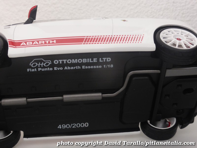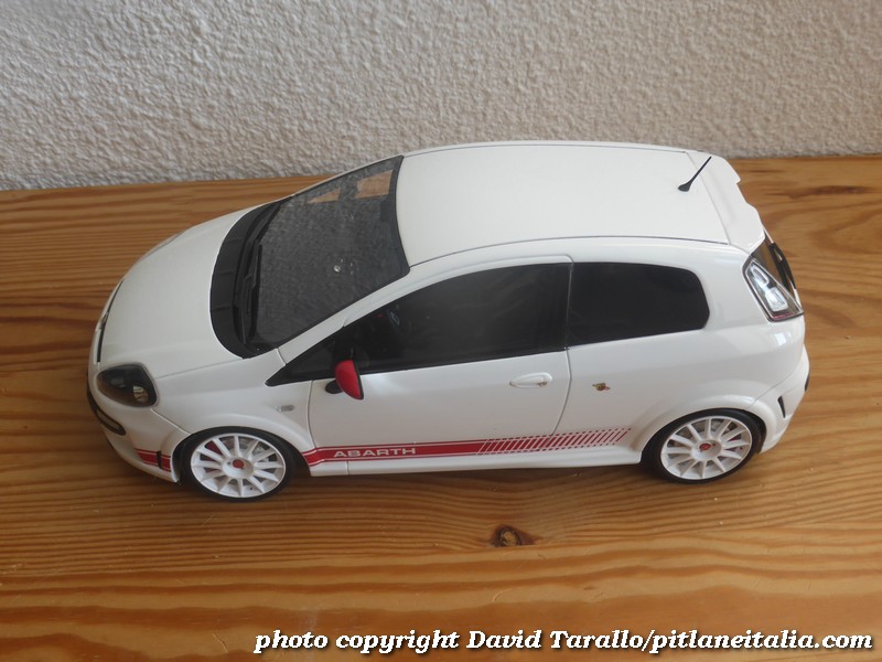 Il modello, verniciato in “bianco 1949”, ha tutte le caratteristiche tipiche degli OttOmobile: finitura corretta, montaggio accurato, colpo d’occhio decisamente accattivante. Tra l’altro, OttOmobile possiede le licenze ufficiali di Fiat e Abarth e può quindi produrre modelli recenti o contemporanei, sotto i 25 anni di età. Altri brand concorrenti debbono invece fermarsi prima, limitandosi ad auto più anziane.