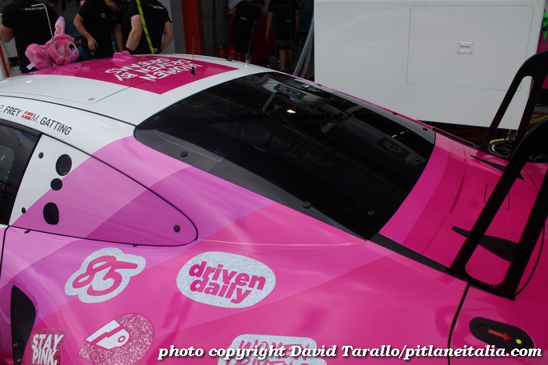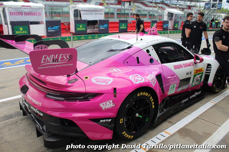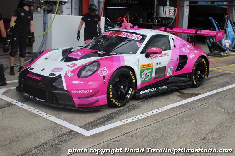 Ecco una serie di foto di una Porsche dalla livrea abbastanza accattivante, quella del celebre trio delle Iron Dames che corrono nel FIA-WEC 2025. Quest’anno l’equipaggio del mondiale endurance è composto da Célia Martin, Rahel Frey e Michelle Gatting. Per la gioia dei MDF che popolano Facebook buttiamo dentro anche due fotine delle dirette interessate. Tornando seri, la vettura è una 911 (serie 992) GT3-R ottemperante al regolamento della classe LMGT3 dell’ACO. Il telaio dell’esemplare della 6 Ore di Imola è WP0ZZZ99ZRS299531.