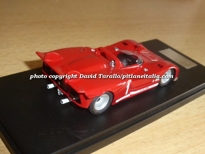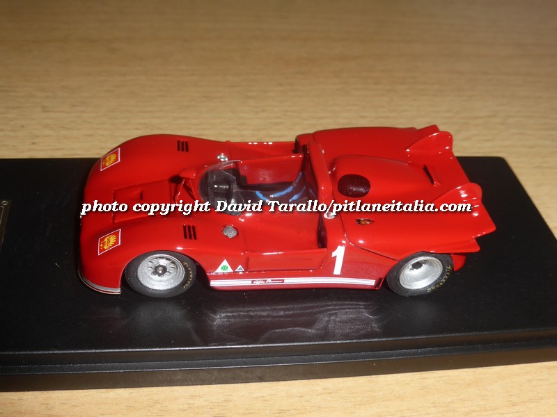 E’ di recente uscita una nuova versione molto particolare della 33/3 (catalogo Fast130), vista nelle prove a Monza nel 1971 con Andrea De Adamich al volante. E’ una configurazione interessante, che unisce la carrozzeria corta allo specchio di coda provvisto di uscite e rinforzi.