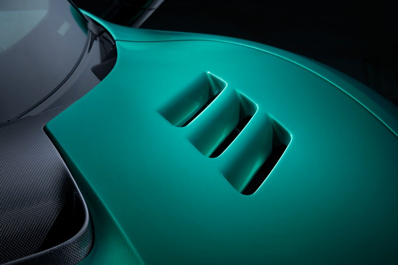 Nella zona dell’arco ruota anteriore, anche il copribrancardo concorre a migliorare l’estrazione laterale del flusso dal fondo anteriore innescata dai generatori di vortici. Sulla parte posteriore del longherone, una presa d’aria alimenta il soffiaggio della ruota che pulisce i flussi in un’area cruciale per la gestione della scia.