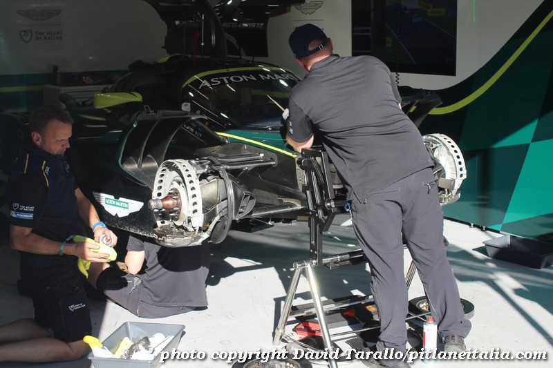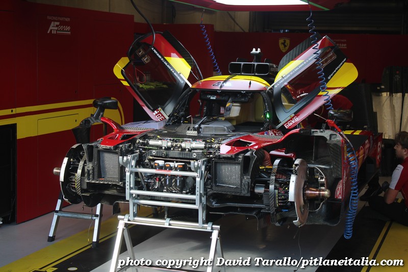 L’attività nei box non finisce praticamente mai e domani è il giorno della gara. Si smonta, si ripara, si ricostruisce e si provano cambi gomme e pilota. Intorno alle auto ci sono meno cordoni e protezioni e qualcosa si riesce a ottenere.