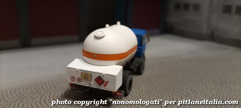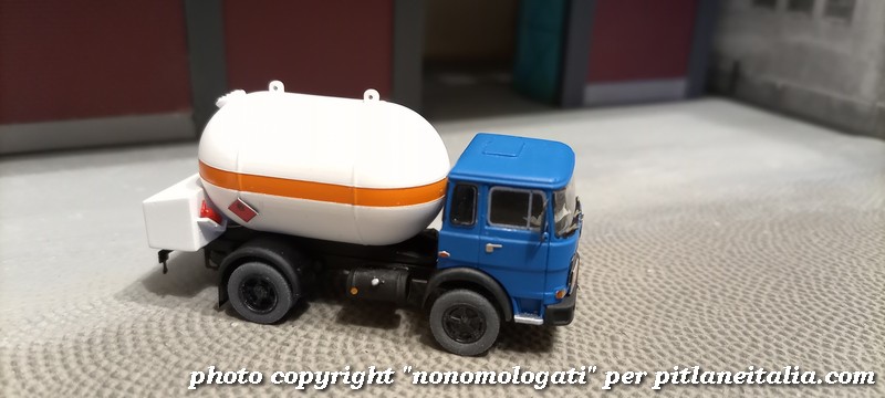 OM 110 trasporto gas, camion inedito in scala H0. La 110/130 era una gamma media dotata della tipica cabina H ma di dimensioni ridotte. Il modello monta il tipico trilex a sole 5 razze. Classica livrea neutra bianca con fascia arancione. È dotato di due piccoli estintori. Prezzo, € 110.