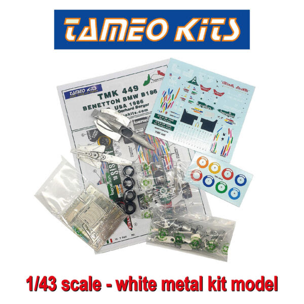 Tameo ha annunciato stamani la disponibilità del kit della Benetton-BMW B186 che disputò il Gran Premio U.S.A nel 1986 con Teo Fabi e Gerhard Berger.