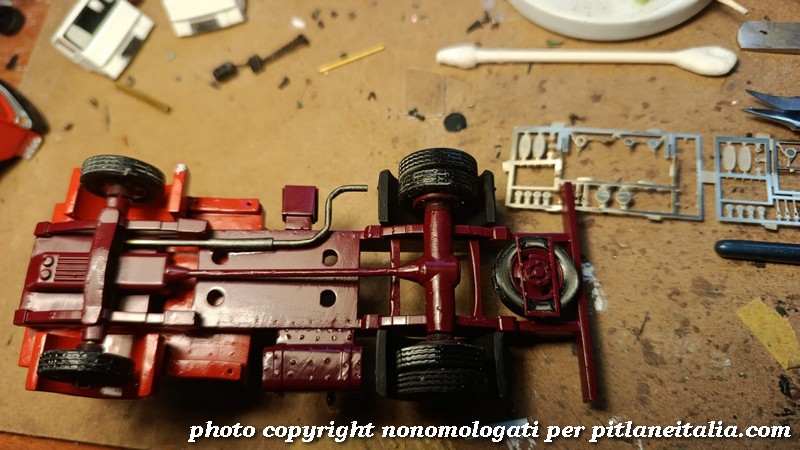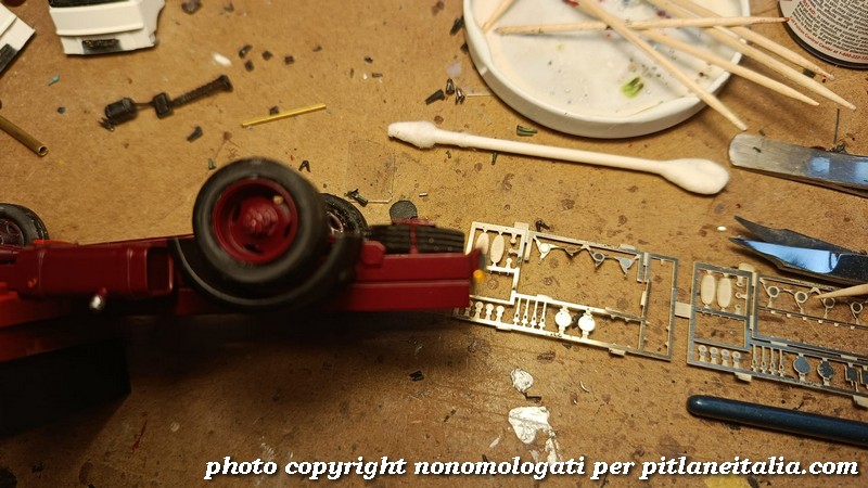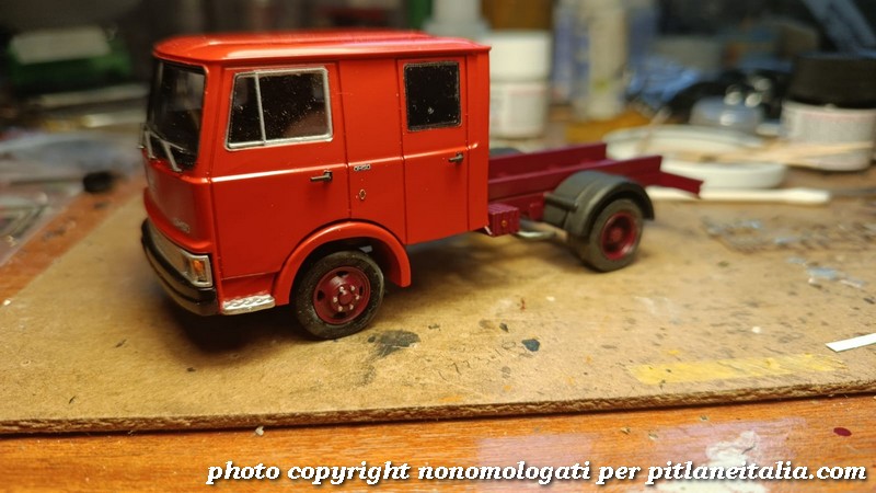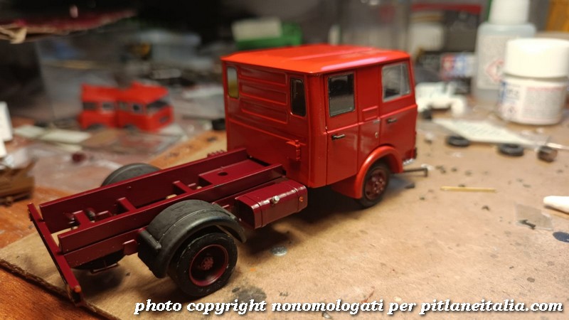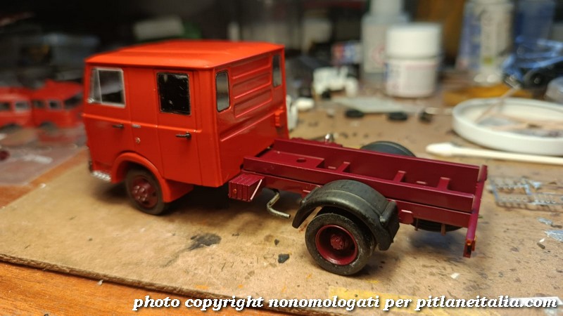 Nella gallery qui sotto, un OM 50 in via di preparazione per un cliente. Su questo esemplare è stata montata una marmitta più realistica e la staffa di supporto della ruota di scorta che poi verrà utilizzata su tutta la produzione definitiva.